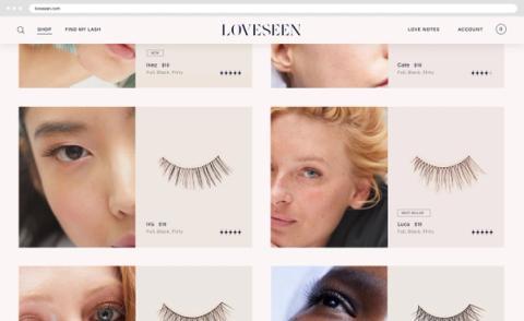 Working closely with Jenna Lyons, Ania et Lucie was brought on to design the digital home for Loveseen, a new brand of natural looking eyelashes to fit different eye shapes, skin tones, ages and moods.